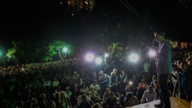 لم يكن خوان غوايدو معروفاً سابقاً، فقد تم انتخابه رئيساً للجمعية الوطنية المعارضة قبل ثلاثة أسابيع فقط، وأدى انتخابه إلى إعادة الحياة إلى معارضي الرئيس الحالي نيكولاس مادورو في بلد يعاني من أزمة اقتصادية خانقة.