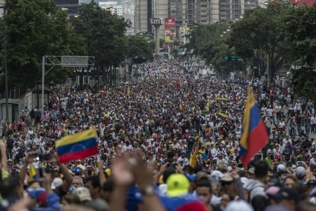 ويقول غوايدو “إن لديه خارطة طريق واضحة المعالم من أجل اختيار حكومة انتقالية تمهد لانتخابات حرة ونزيهة”.