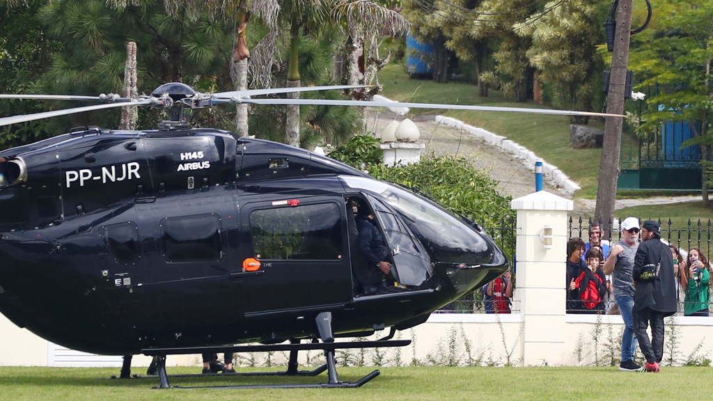 ولم يكن قدوم نيمار إلى مركز تدريب منتخب البرازيل عاديا في غرانجا كوماري في تيرسيبوليس بالقرب من ريو دي جانيرو، إذ هبط بمروحية سوداء حملت الأحرف الأولى من اسمه.