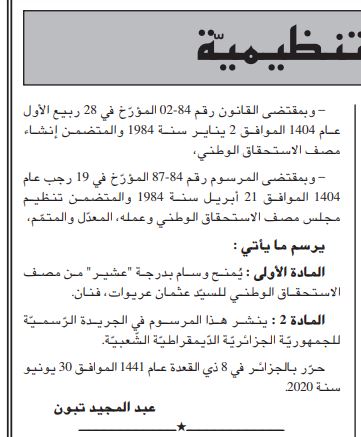 المرسوم وقعة الرئيس عبد المجيد تبون وصدر في العدد الاخير من الجردية الرسمية.