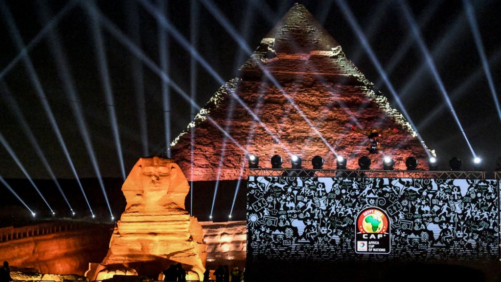 Il est vêtu d’un maillot rouge qui n’est pas sans rappeler celui de l’Égypte, sauf que le sien arbore une carte du continent africain. Et il porte bien évidemment un uræus, la célèbre couronne en forme de cobra qui symbolisait la puissance des Pharaons de l’Égypte antique.