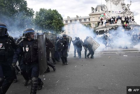 À Paris, la police a tiré des gaz lacrymogènes après avoir reçu quelques projectiles au cours d’un rassemblement de plusieurs milliers de personnes – 15 000 d’après la police – sur la place de la République.