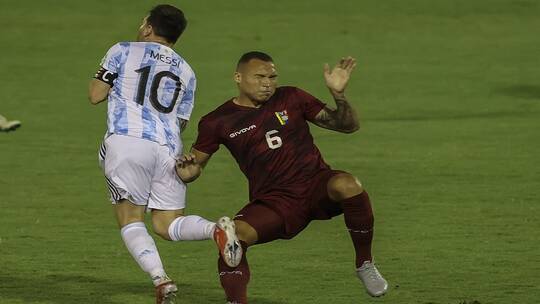 شاهد.. مدافع فنزويلي يتدخل بعنف على ركبة ميسي والحكم يطرده