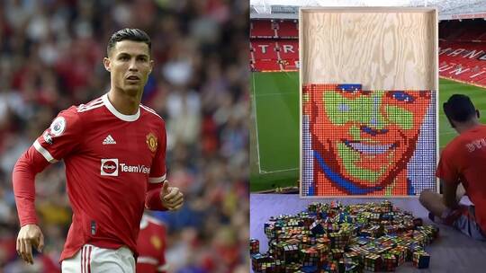 ونشر الحساب الرسمي لنادي مانشستر يونايتد على موقع “تويتر” مقطع فيديو لفنان شاب يبدو أنه من مشجعي فريق “الشياطين الحمر” ونجمه كريستيانو رونالدو، في ملعب “أولد ترافورد” وهو يحول بمهارة عالية مجموعة كبيرة من مكعبات “الروبيك” إلى لوحة فنية جميلة لوجه “صاروخ مداديرا” الهداف التاريخي للمنتخب البرتغالي، دوري أبطال أوروبا، كأس الأمم الأوروبية، كأس العالم للأندية وفريق ريال مدريد.