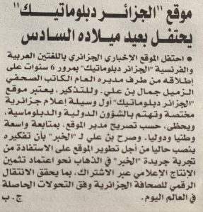 جريدة الخبر تُشيد بموقع “الجزائر دبلوماتيك”
