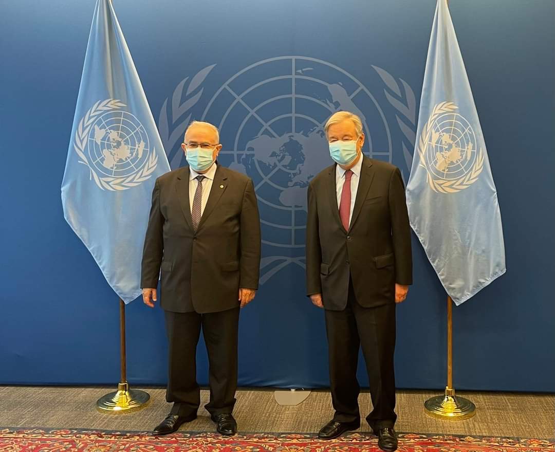 رمطان لعمامرة يعقد جلسة عمل مع الأمين العام للأمم المتحدة السيد أنطونيو غوتيريش