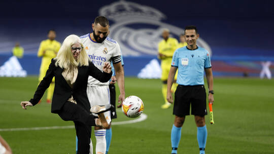 ورافقت سوزانا النجم الفرنسي كريم بنزيما، إلى أرض الملعب، وقامت بركل الكرة ليطير حذاؤها بعيدا في الهواء، وهو ما دفع بنجم “الملكي” إلى الإسراع بإعادته إليها في لقطة أشاد بها الجميع.