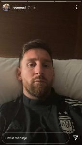 ونشر ميسي صورة عبر خاصية “الستوري” عبر حسابه على “إنستغرام” أول صورة “سيلفي” له ربما ويظهر بها جادا ورأسه على الوسادة.
