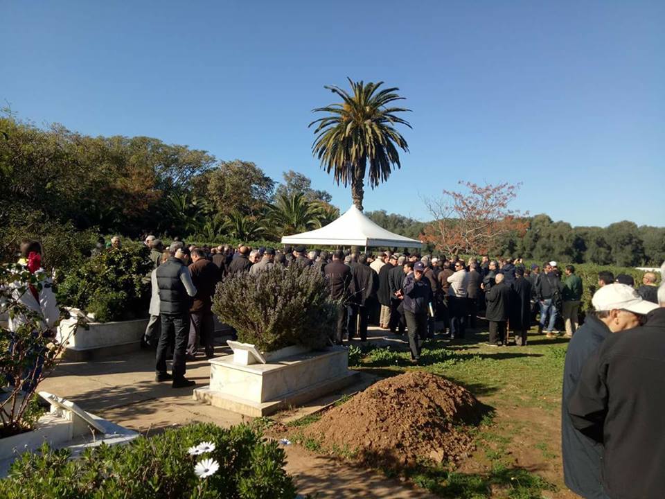 خيّم، حزن كبير، منذ أمس السبت، على نهج فرنان بحسين داي، بالعاصمة، وكان المكان اليوم على موعد مع سير جنازة الفقيد، من منزله الكائن بنهج حنفي فرنان باتجاه مسجد العربي التبسي، في حدود الواحدة زوالا، على متن سيارة إسعاف تابعة لوزارة المجاهدين، أين اصطف رفقاء درب الراحل ومشيعوه أمام المسجد لتودعه والصلاة عليه، لينقل بعد ذلك مباشرة إلى مقبرة العالية بباب الزوار، أين ووري الثرى بالجزء المقابل لمربع الشهداء .