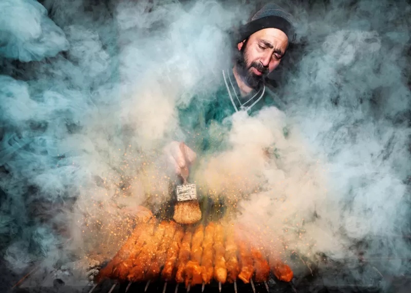 فازت صورة لبائع طعام يعمل أمام شواية لحوم يخرج منها دخان كثيف بالجائزة الكبرى ضمن مسابقة في تصوير الطعام.