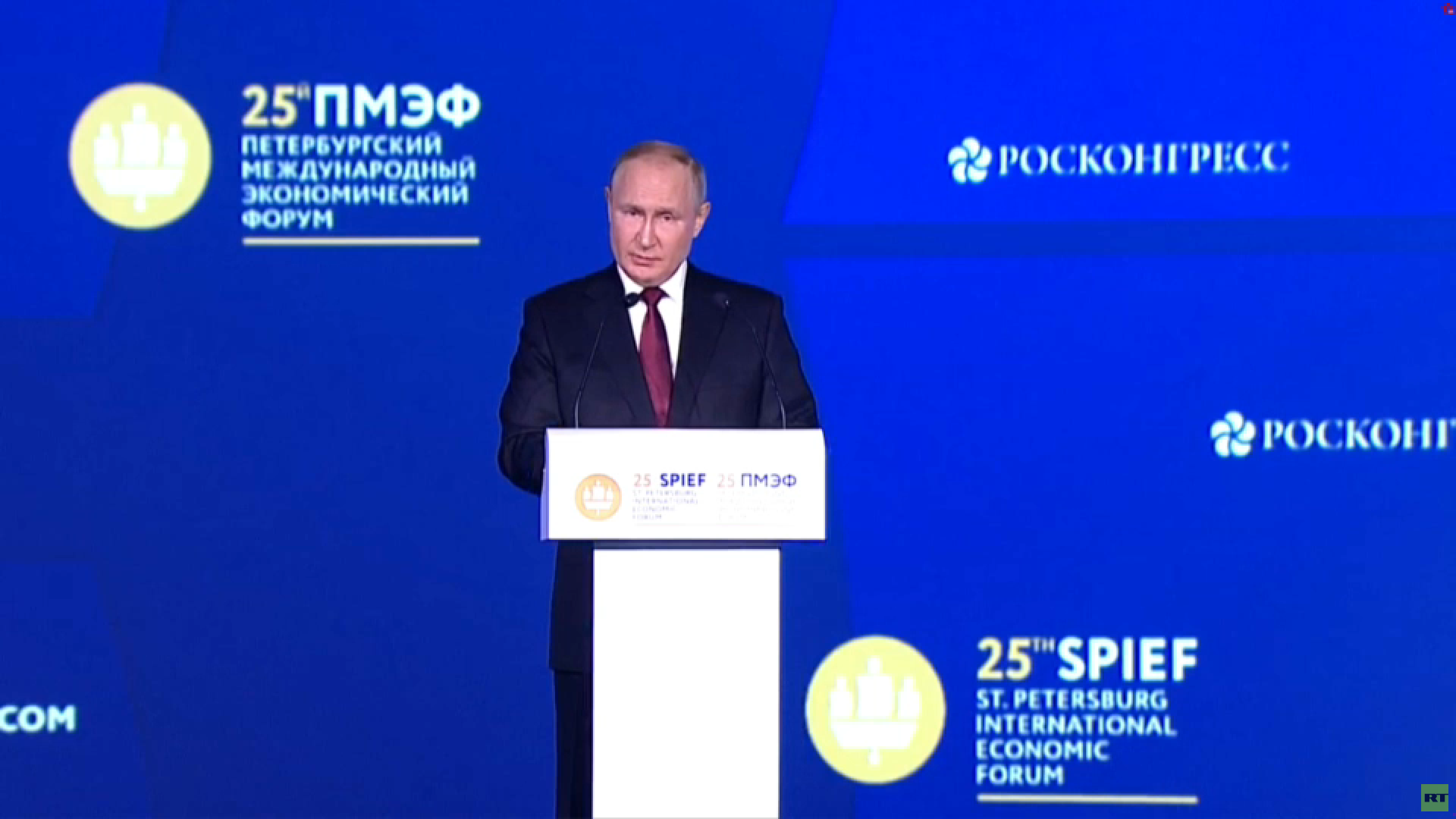 ألقى الرئيس الروسي، فلاديمير بوتين، كلمة خلال مشاركته في الجلسة العامة لمنتدى بطرسبورغ الاقتصادي الدولي الخامس والعشرين SPIEF 2022، اليوم الجمعة، 17 يونيو.