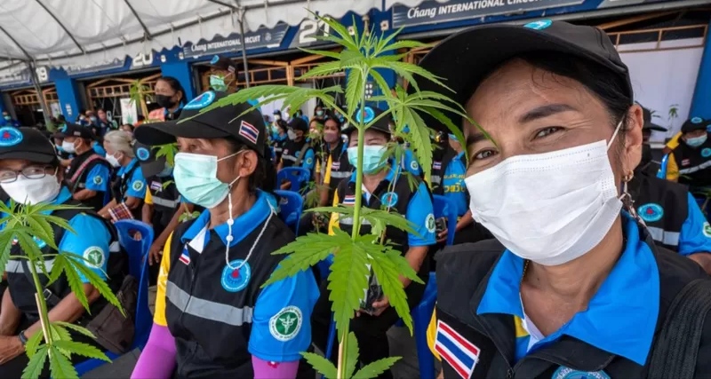 كانت هناك مجموعات من الجدات التايلانديات الضاحكات يجربن مشروبات الحشيش الخضراء، ويصطفون لنيل واحدة من مليون نبتة من الماريجوانا المجانية التي تقدمها الحكومة.
