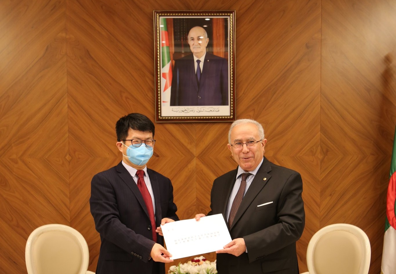 سفير جمهورية الصين الشعبية الجديد بالجزائر لي جيان يسلم اليوم نسخة من أوراق اعتماده إلى وزير الشؤون الخارجية والجالية الوطنية بالخارج رمطان لعمامرة