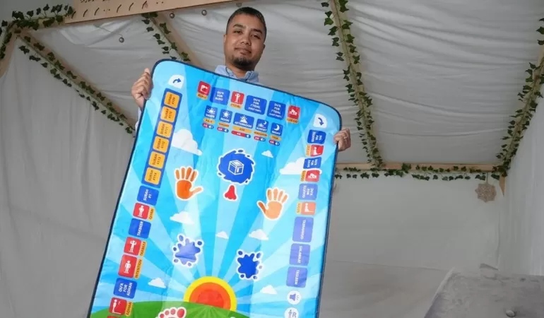 وتساعد سجادة علي التفاعلية الأطفال على أداء الصلاة بطريقة صحيحة.