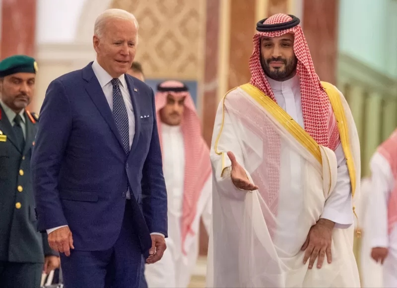 واستقبل محمد بن سلمان، ولي العهد السعودي، بايدن في قصر السلام في جدة.