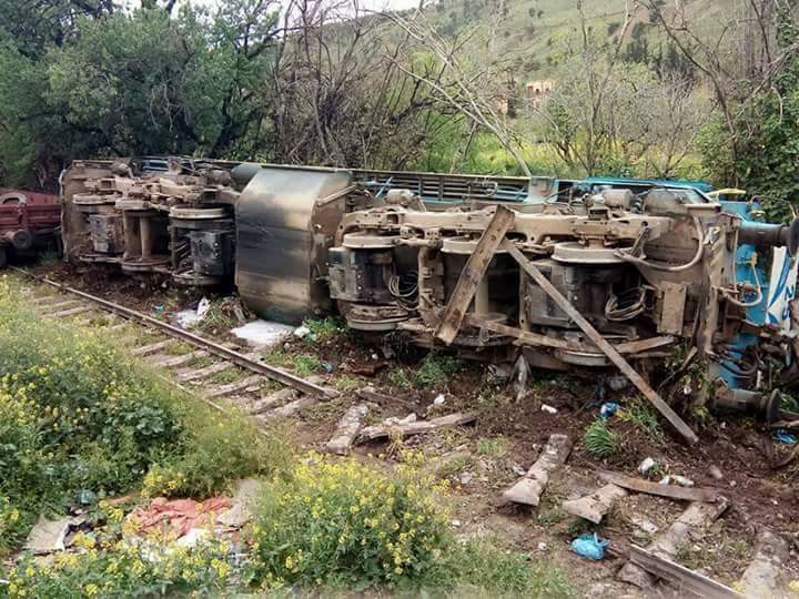 بالصور.. انحرا قطار للمحروقات بسعيدة