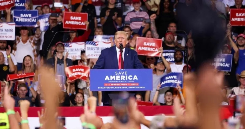 وصف دونالد ترامب الرئيس الأمريكي جو بايدن بأنه “عدو للدولة”، وذلك في أول تجمع حاشد له منذ أن فتش مكتب التحقيقات الفيدرالي منتجعه في فلوريدا بحثا عن ملفات حساسة.