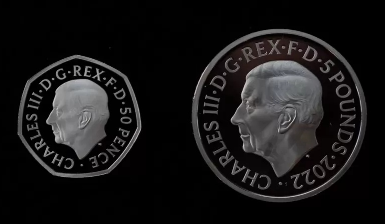 كشف النقاب عن قطع نقدية جديدة عليها صورة ملك بريطانيا تشارلز الثالث، حيث سيبدأ تداول عملات من فئة خمسين بنسا تحمل صورته خلال أسابيع.