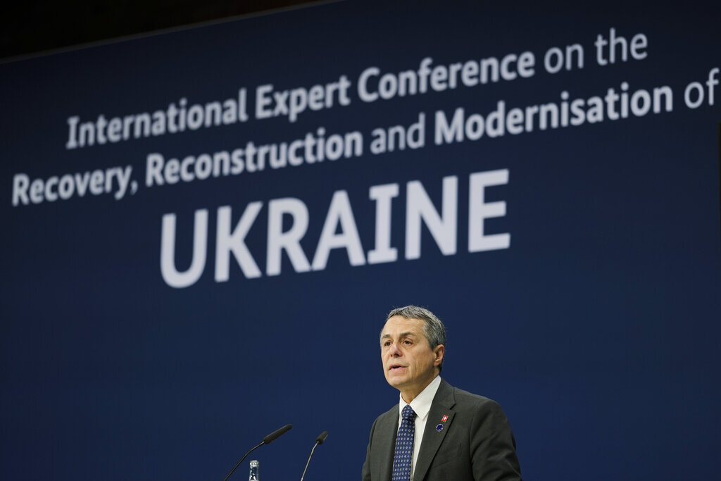 وقال في خطاب ألقاه في المؤتمر الدولي حول إعادة إعمار أوكرانيا المنعقدة اليوم الثلاثاء في برلين: “لا تزال سويسرا شريكا موثوقا. نركز جهودنا على المجالات التي تكون فيها قيمتنا المضافة أكثر أهمية وحيث تكون تجربتنا مفيدة للغاية. وكدولة محايدة لا نزود بالسلاح”.