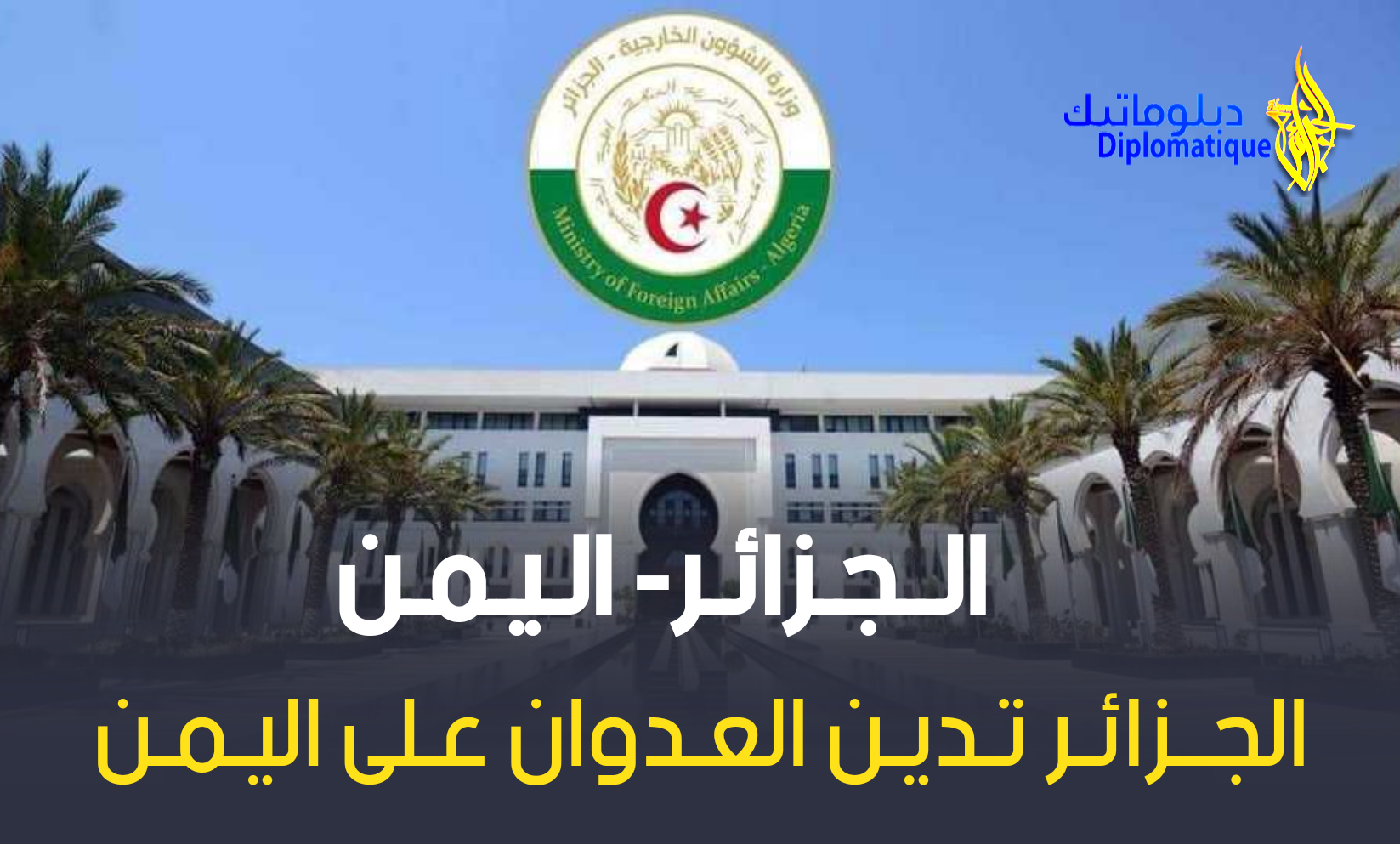 تدين الجزائر بشدة العدوان الإسرائيلي السافر على اليمن الشقيق. إن هذا العدوان يدخل ضمن استراتيجية التصعيد المنتظم والممنهج التي تبناها الكيان الصهيوني بهدف بسط هيمنته المطلقة على المنطقة بأكملها وصرف الأنظار عن جرائمه التي باتت لا تعد ولا تحصى ولا توصف في غزة تحديداً وفي فلسطين