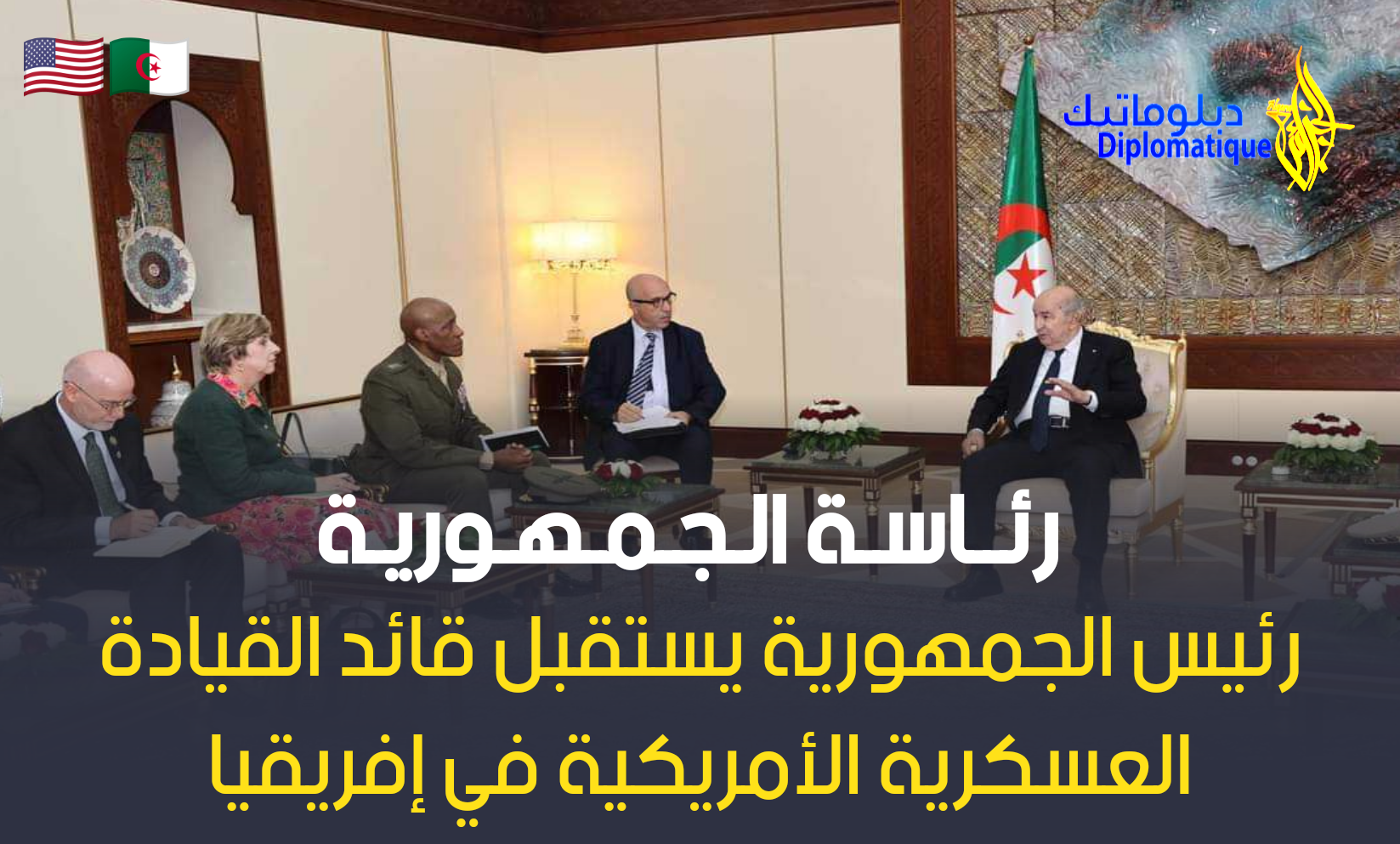 إستقبل رئيس الجمهورية, القائد الأعلى للقوات المسلحة, وزير الدفاع الوطني, السيد عبد المجيد تبون, يوم الثلاثاء, قائد القيادة العسكرية الأمريكية في إفريقيا (أفريكوم), الفريق أول مايكل لانجلي, حسب ما أورده بيان لرئاسة الجمهورية.