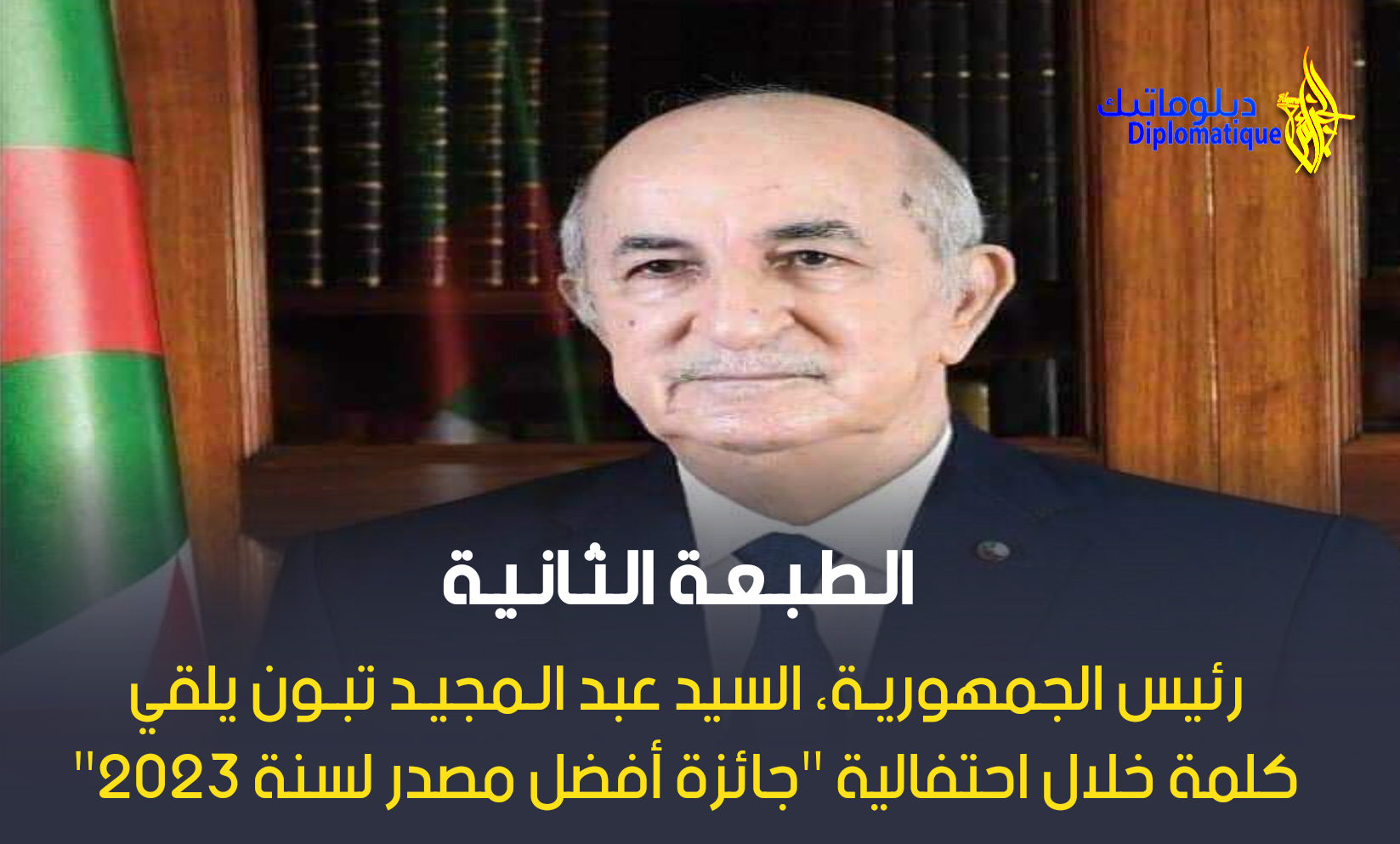 رئيس الجمهوريّـة، السّيّد عبد الـمجيـد تبّـون يلقي كلمة خلال احتفالية “جائزة أفضل مُصدّر لسنة 2023”: