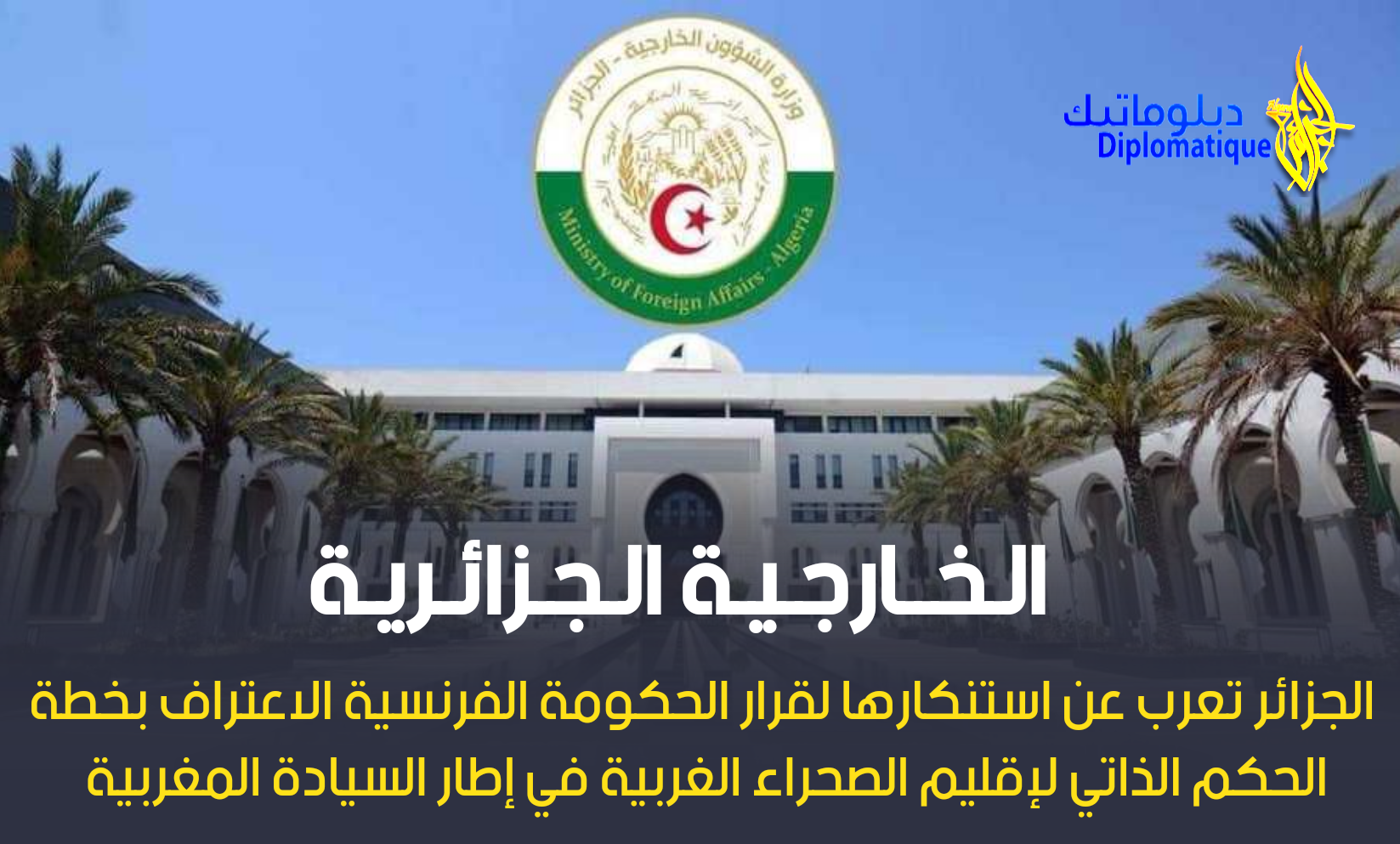 الجزائر تستنكر قرار الحكومة الفرنسية الاعتراف بخطة الحكم الذاتي لإقليم الصحراء الغربية في إطار السيادة المغربية المزعومة