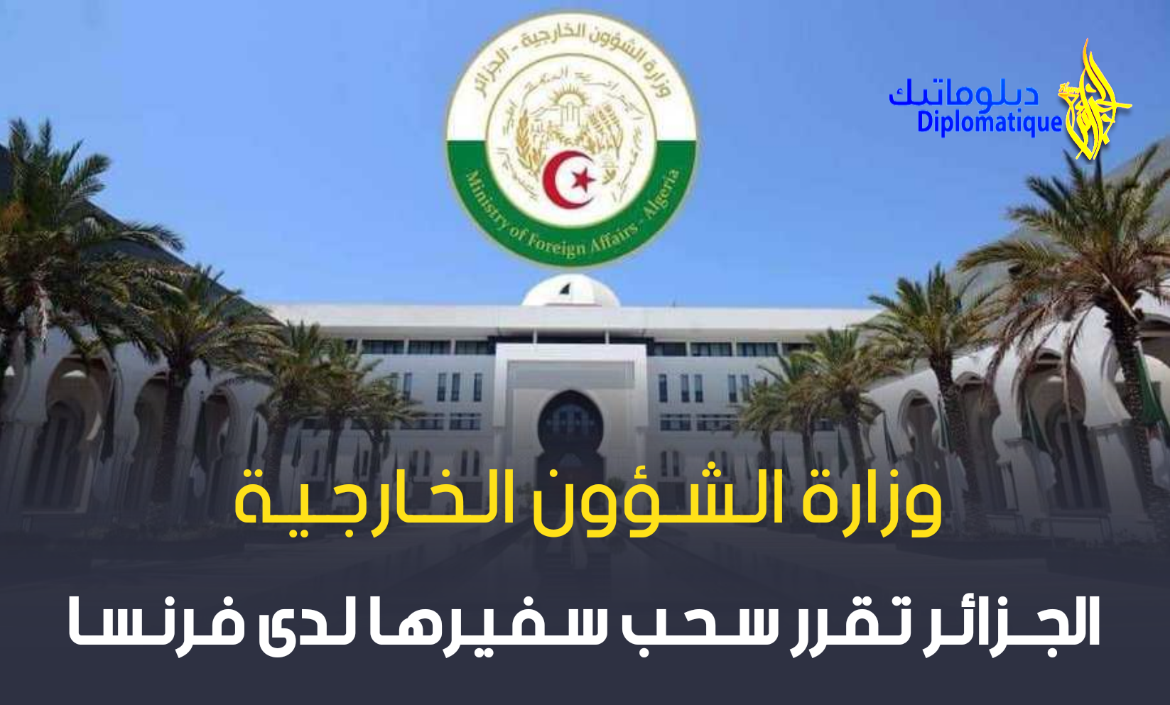 قررت الحكومة الجزائرية سحب سفيرها لدى الجمهورية الفرنسية بأثر فوري عقب إقدام الحكومة الفرنسية على الإعتراف بالمخطط المغربي للحكم الذاتي كأساس وحيد لحل نزاع الصحراء الغربية في إطار السيادة المغربية المزعومة, وفقا لما أوردته وزارة الشؤون الخارجية والجالية الوطنية بالخارج في بيان لها يوم الثلاثاء.