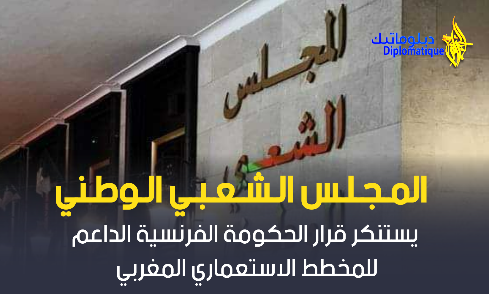 وتابع بالقول: “إننا في المجلس الشعبي الوطني ونحن ممثلو الشعب, نستنكر هذه الخطوة التي لا تنم إلا عن تهور وتجاوز لكل القوانين والأعراف من قبل حكومة فرنسا وهي تؤيد نظام المخزن الاستعماري التوسعي في الوقت الذي كان ينتظر منها أن تتحمل مسؤوليتها كعضو دائم في مجلس الأمن وتسعى لحل دائم يضمن حق الشعب الصحراوي الذي ناضل ولا يزال من أجل حقه المشروع في استعادة أرضه المحتلة”.