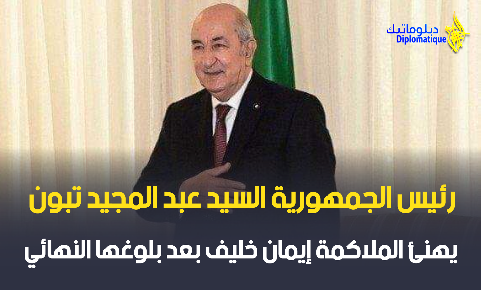 وجاء في تهنئة رئيس الجمهورية: ” شكرا إيمان خليف على إسعادك كل الجزائريين بهذا التأهل القوي والرائع للنهائي… الأهم قد تحقق، وبحول الله التتويج بالذهب … كل الجزائريات والجزائريين معك”.