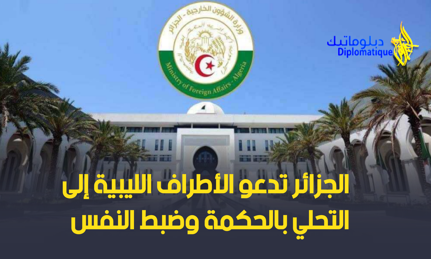 وعليه – يضيف المصدر- فإن الجزائر تدعو جميع الأطراف الليبية إلى “التحلي بالحكمة وضبط النفس والتبصر لتجنيب بلدهم وشعبهم التداعيات المأساوية لاستئناف المواجهات التي ستكون أولى ضحاياها كافة الأهداف التي ينشدونها وننشدها معهم من إيجاد حل سلمي للأزمة, ومن تحقيق المصالحة بين الليبيين, ومن إعادة توحيد المؤسسات, وخاصة المؤسسات الأمنية, ومن وضع حد للتدخلات الأجنبية, وكذا من فتح عهد جديد من الأمن والاستقرار والازدهار في هذا البلد الشقيق”.