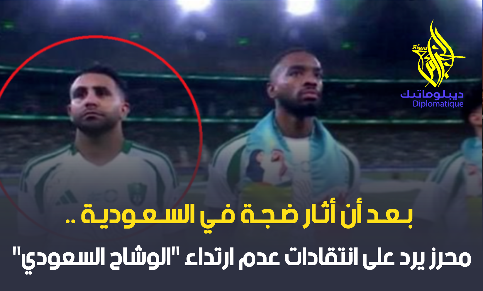أثار ظهور النجم الجزائري رياض محرز بدون الوشاح السعودي على هامش الاحتفال باليوم الوطني للمملكة، قبل مباراة فريقه أهلي جدة مع ضمك، أمس الجمعة، جدلا واسعا.