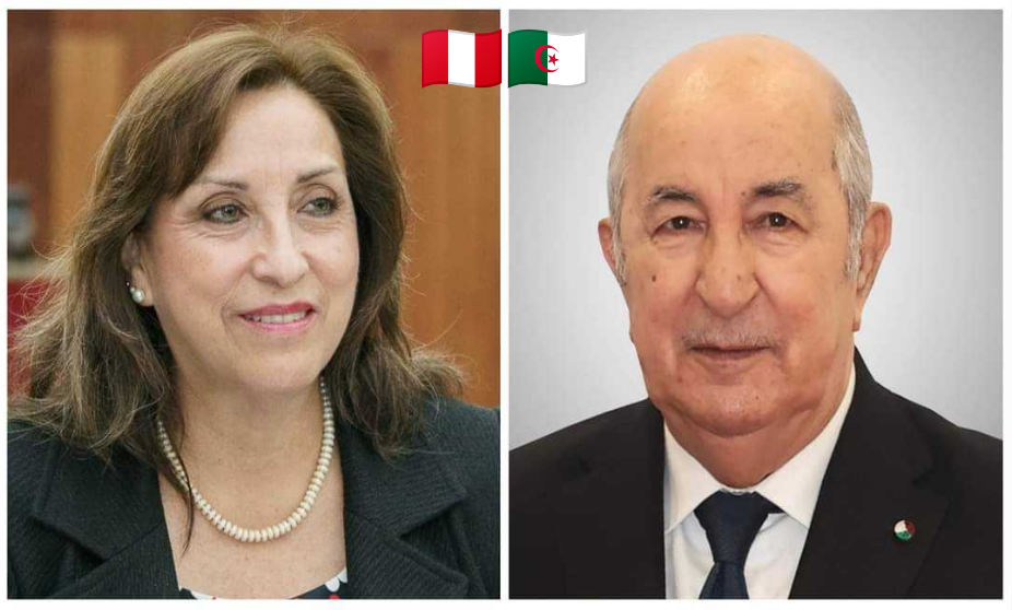 هنأت رئيسة جمهورية البيرو السيدة دينا إرسيليا بولوارتي زغارا، باسمها وباسم شعب البيرو، رئيس الجمهورية السيد عبد المجيد تبون، بمناسبة إعادة انتخابه رئيساً للجمهورية، معبرةً عن تهانيها الخالصة، ومُعربة عن ارتياحها لمستوى تقدم العلاقات الثنائية والتي ستتعزز بالذكرى الخمسين لتأسيس العلاقات الدبلوماسية بين البلدين.