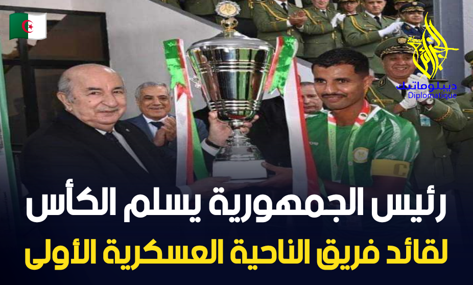 سلم رئيس الجمهورية, القائد الأعلى للقوات المسلحة, وزير الدفاع الوطني, السيد عبد المجيد تبون, يوم الخميس, الكأس العسكرية لكرة القدم في طبعتها ال 52 لقائد فريق الناحية العسكرية الاولى عماد بن عيسى, بعد اللقاء النهائي الذي فاز به هذا الفريق على حساب فريق الناحية العسكرية الرابعة بنتيجة 2-1 , بملعب مركز تجمع وتحضير الفرق الرياضية العسكرية, الشهيد “مسعود بوجريو” ببن عكنون (الجزائر العاصمة).