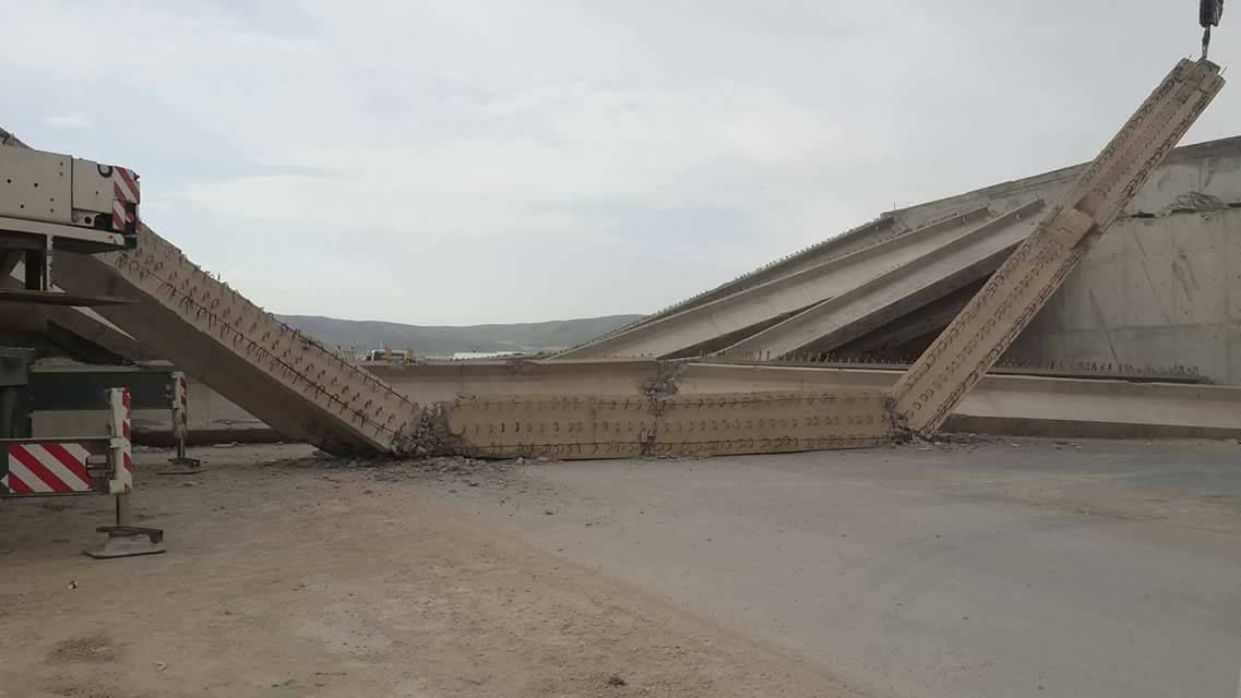 وأوضح، البيان انه “في حدود الثامنة صباحا من نهار أمس السبت و خلال عملية وضع احد أعمدة السقفين العلوين للجسر الإزدواجي للمحول الجاري انجازه على مستوى الطريق الوطني رقم 16 بولاية تبسة، انهار العمود ما قبل الأخير جارفا معه الأعمدة ال12 التي سبق وضعها”.
