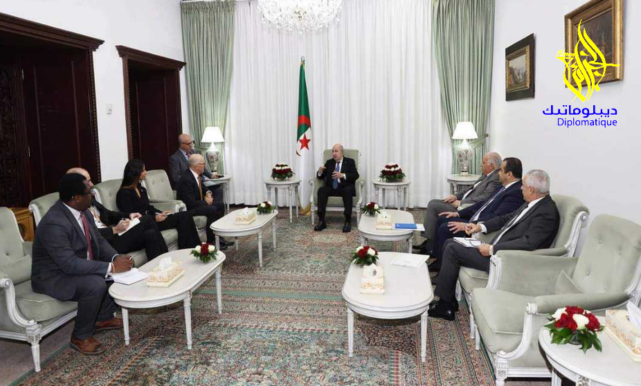 وجرى اللقاء بحضور وزير دولة وزير الشؤون الخارجية والجالية الوطنية بالخارج والشؤون الافريقية, السيد أحمد عطاف, و وزير دولة وزير الطاقة والمناجم والطاقات المتجددة, السيد محمد عرقاب, إلى جانب الأمين العام لرئاسة الجمهورية, السيد منجي عبد الله.