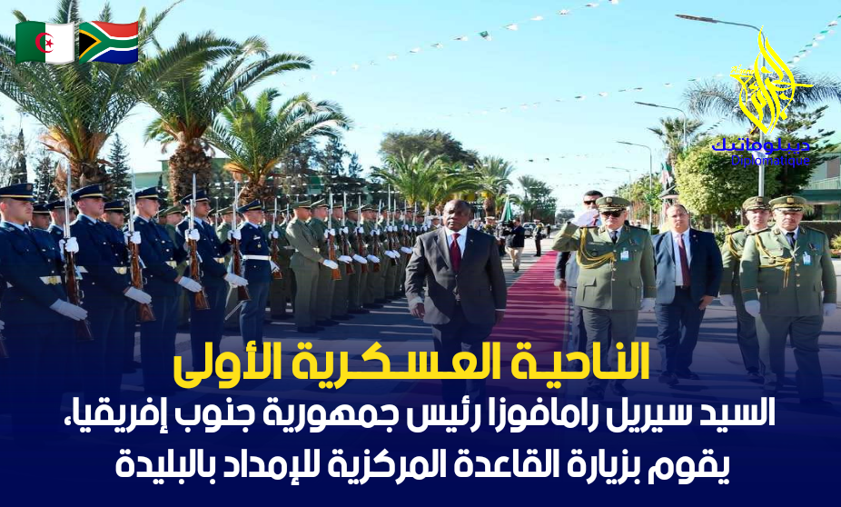 الناحية العسكرية الأولى: السيد سيريل رامافوزا رئيس جمهورية جنوب إفريقيا، يقوم بزيارة القاعدة المركزية للإمداد بالبليدة