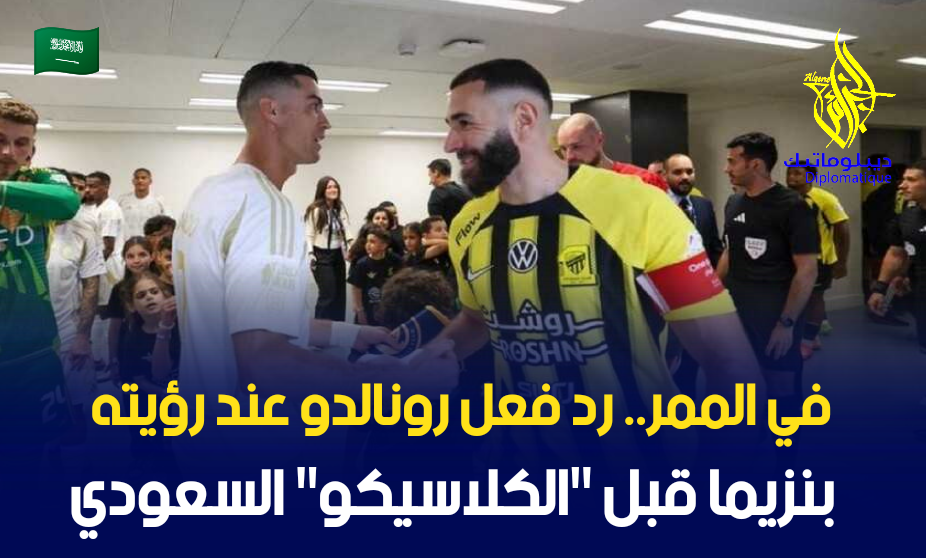والتقى رونالدو في ممر ملعب “الجوهرة المشعة” قبل انطلاق صافرة بداية مباراة قمة الجولة 13 من دوري “روشن” لكرة القدم للمحترفين، مع زميله الابق في ريال مدريد كريم بنزيما.