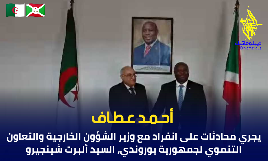 في إطار الزيارة الرسمية التي يقوم بها بصفته مبعوثا خاصا للسيّد رئيس الجمهورية، أجرى وزير الدولة، وزير الشؤون الخارجية والجالية الوطنية بالخارج والشؤون الإفريقية، السيّد أحمد عطاف، اليوم ببوجمبورا، محادثات على انفراد مع وزير الشؤون الخارجية والتعاون التنموي لجمهورية بوروندي، السيد ألبرت شينجيرو، أعقبتها جلسة عمل موسعة بمشاركة وفدي البلدين.