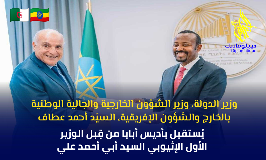 في إطار الزيارة الرسمية التي يقوم بها بصفته مبعوثا خاصا للسيّد رئيس الجمهورية، استقبل وزير الدولة، وزير الشؤون الخارجية والجالية الوطنية بالخارج والشؤون الإفريقية، السيّد أحمد عطاف، اليوم بأديس أبابا، من قبل الوزير الأول الإثيوبي، السيد أبي أحمد علي.