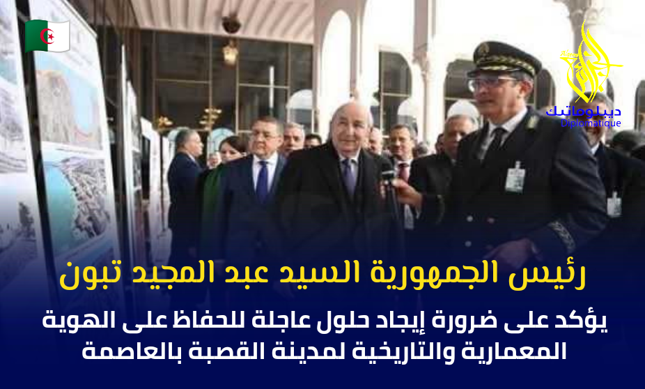 أكد رئيس الجمهورية, السيد عبد المجيد تبون, اليوم الاثنين, على ضرورة إيجاد حلول عاجلة للحفاظ على الهوية المعمارية والتاريخية لمدينة القصبة وأسدى أوامر وتوجيهات لعديد الوزراء والمسؤولين تخص المشاريع ومخطط العمل لتطوير وعصرنة العاصمة.