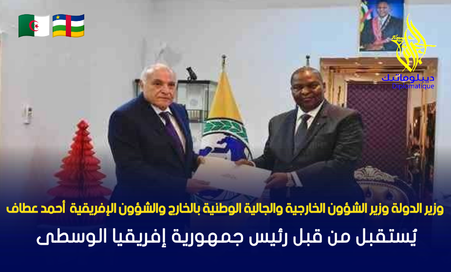 استقبل وزير الدولة, وزير الشؤون الخارجية والجالية الوطنية بالخارج والشؤون الإفريقية, السيد أحمد عطاف, اليوم الاثنين ببانغي, من قبل رئيس جمهورية إفريقيا الوسطى, السيد فوستان آرشانج تواديرا, في إطار الزيارة الرسمية التي يقوم بها بصفته مبعوثا خاصا لرئيس الجمهورية, السيد عبد المجيد تبون, وفق ما أورده بيان للوزارة.