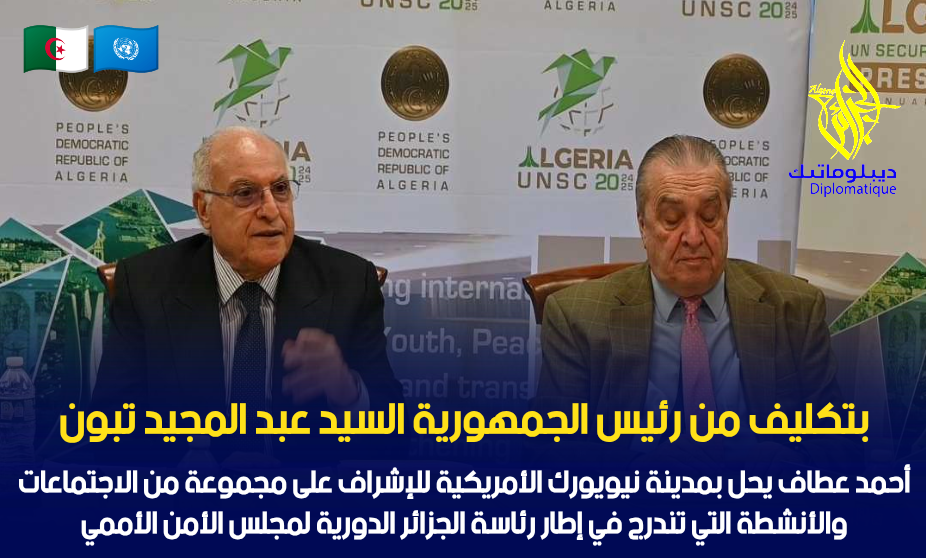 بتكليف من السيّد رئيس الجمهورية، حلّ وزير الدولة، وزير الشؤون الخارجية والجالية الوطنية بالخارج والشؤون الإفريقية، السيّد أحمد عطاف، اليوم بمدينة نيويورك الأمريكية، للإشراف على مجموعة من الاجتماعات والأنشطة التي تندرج في إطار رئاسة الجزائر الدورية لمجلس الأمن الأممي خلال شهر يناير الحالي.