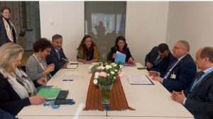 مواصلة للقاءاته الثنائية على هامش مشاركته في الشق رفيع المستوى لأشغال الدورة الثامنة والخمسين (58) لمجلس حقوق الانسان، المنعقد بجنيف، خلال الفترة الممتدة من 24 إلى 26 فيفري 2025، أجرى الأمين العام لوزارة الشؤون الخارجية، السيد لوناس مقرمان، محادثات ثنائية مع عدد من المسؤولين المشاركين في هذه الدورة.