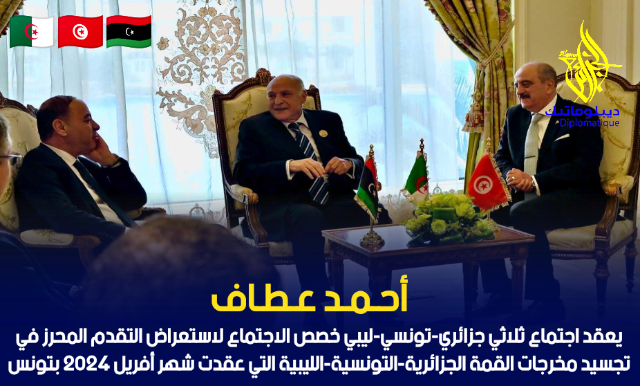 قُبيل انطلاق أشغال القمة العربية الطارئة، انعقد اجتماع ثلاثي جزائري-تونسي-ليبي جمع كل من وزير الدولة، وزير الشؤون الخارجية والجالية الوطنية بالخارج والشؤون الإفريقية، السيّد أحمد عطاف، ووزير الشؤون الخارجية والهجرة والتونسيين بالخارج للجمهورية التونسية الشقيقة، السيّد محمد علي النفطي، وكذا الوزير الليبي المُكلف بتسيير أعمال وزارة الخارجية بدولة ليبيا، السيد الطاهر الباعور.