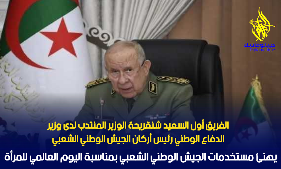 وخلص رئيس أركان الجيش الوطني الشعبي إلى القول: “وإذ أجدد التهاني الخالصة والتبريكات الصادقة إلى كافة مستخدمات الجيش الوطني الشعبي, سليل جيش التحرير الوطني, العسكريات والمدنيات, ومن خلالهن إلى جميع حرائر الجزائر في المدن والقرى والمداشر والأرياف وصحرائنا الكبرى, فإنني أرجو من العلي القدير أن يمن عليهن بكل أسباب التوفيق والنجاح في أداء المهام والمسؤوليات الموكلة لهن, خدمة للجزائر عموما والجيش الوطني الشعبي على وجه الخصوص”.
