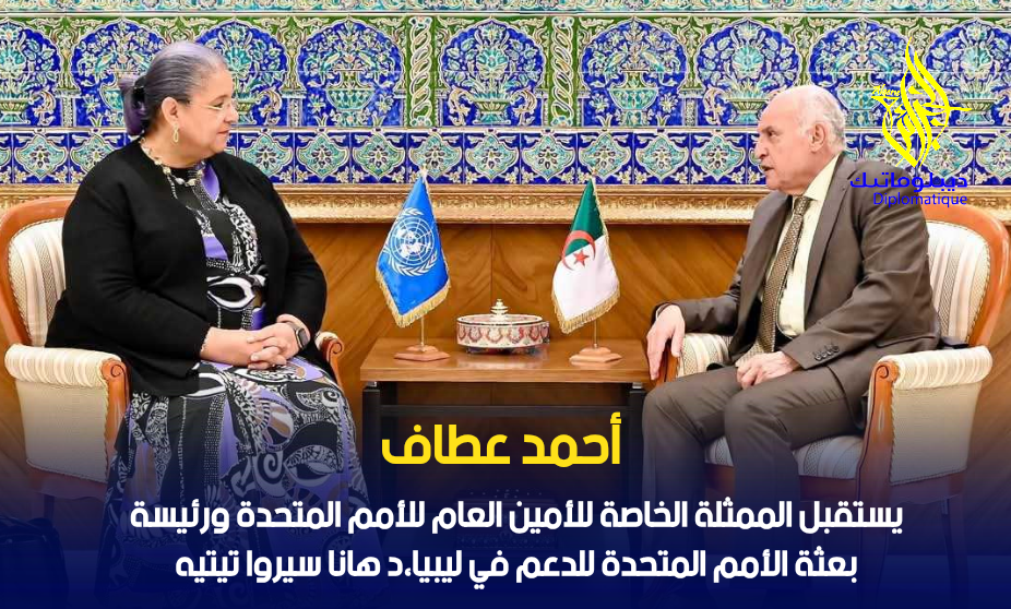 استقبل وزير الدولة، وزير الشؤون الخارجية والجالية الوطنية بالخارج والشؤون الإفريقية، السيّد أحمد عطاف، اليوم بمقر الوزارة، المُمثلة الخاصة للأمين العام للأمم المتحدة ورئيسة بعثة الأمم المتحدة للدعم في ليبيا، السيدة هانا سيروا تيتيه، التي تقوم بزيارة رسمية إلى الجزائر.