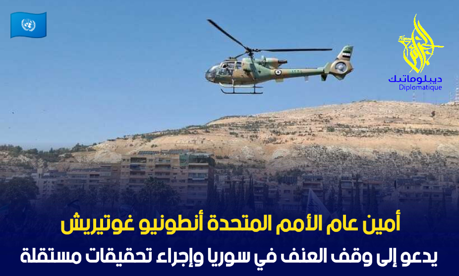 غوتيريش يدعو إلى وقف العنف في سوريا وإجراء تحقيقات مستقلة