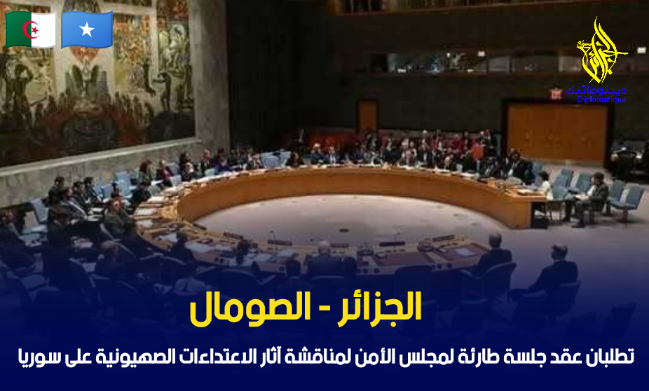 طلبت الجزائر والصومال اليوم الثلاثاء عقد جلسة طارئة لمجلس الأمن الدولي, لمناقشة آثار الاعتداءات الصهيونية على سوريا الشقيقة.