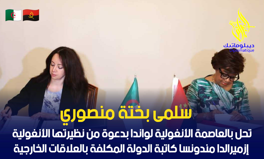 حلّت اليوم كاتبة الدولة لدى وزير الشؤون الخارجية، المكلّفة بالشؤون الإفريقية، السيدة سلمى بختة منصوري، بالعاصمة الأنغولية لواندا، في زيارة عمل، بدعوة من نظيرتها الأنغولية، السيدة إزميرالدا مندونسا، كاتبة الدولة المكلّفة بالعلاقات الخارجية.